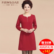 中老年女装长袖连衣裙妈妈装春装胖中年秋冬中长打底衫30-40岁50