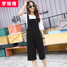 春夏新款少女韩版宽松连体吊带短裤初中高中学生休闲背带五分中裤