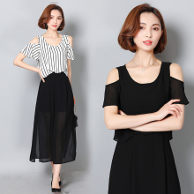 加肥大码女装波西米亚长裙夏装新款修身胖MM露肩假两件雪纺连衣裙