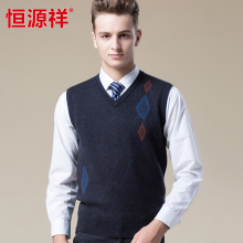 恒源祥男士羊毛背心冬装加厚V领坎肩羊毛衫马甲男装毛衣