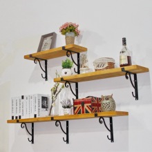 loft实木铁艺书架墙上隔板置物架客厅墙壁挂机顶盒层架厨房储物架
