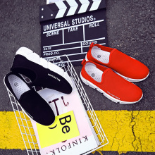 春季帆布鞋学生小白鞋韩版单鞋百搭休闲女鞋平底板鞋一脚蹬懒人鞋