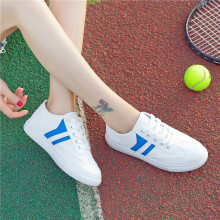 春季新款韩版小白鞋女系带学生帆布鞋皮面女鞋白色休闲平底板鞋潮
