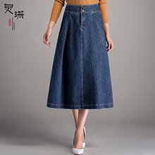 灵珊2017春夏半身裙a字裙中长款高腰百褶裙松紧腰女裙牛仔半截裙