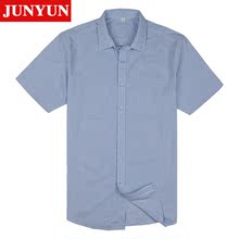 君运2017夏季衬衫纯棉全棉布薄款男短袖大码男装休闲条纹格子衬衣