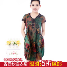 2014中老年韩版妈妈真丝新款连衣裙夏 100%桑蚕丝香云纱短袖裙子