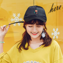 帽子女夏季玫瑰花刺绣长带棒球帽丝光清凉时尚个性鸭舌帽出游潮帽