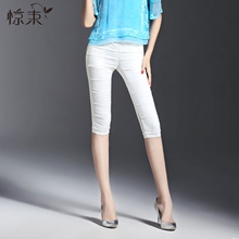 惊束夏季女胖MM七分裤大码女装打底裤糖果色外穿薄款休闲裤子