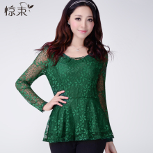 惊束女装秋装黑色女式时尚蕾丝衫蕾丝上衣长袖大码打底衫胖MM秋
