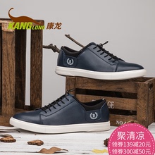 康龙休闲皮鞋 男士透气舒适头层牛皮流行男鞋 春秋系带低帮鞋子