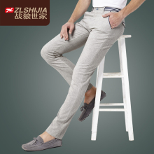 战狼世家2017新款商务休闲裤男修身长裤青年亚麻裤夏季直筒裤子男