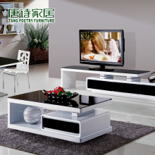 现代不锈钢钢化玻璃茶几 时尚黑白色烤漆大小茶几523