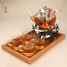 盟集玻璃茶壶透明耐热加厚不锈过滤加热配电磁炉专用烧水煮茶套装