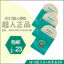 超人剃须刀配件18-3用于SA851 93等双环刀片刀网(刀头+网罩)3只