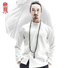 意树新款中国风男装长袖T恤男原创春季中式上衣微弹休闲百搭T恤男