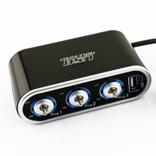 带蓝光一拖三点烟器 车载点烟器 开关汽车点烟器 带usb 转换插头