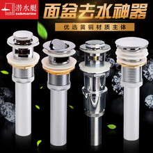 潜水艇黄铜不锈钢弹跳翻板洗脸盆洗手盆面盆下水器带溢水下水器