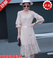 yixin衣信71款 连衣裙 正品 2017年春夏 中袖蕾丝裙 系腰带鱼尾裙