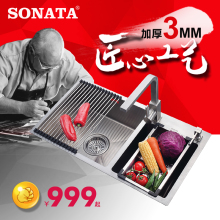 舒耐特水槽 手工水槽大单槽套餐 加厚304不锈钢厨盆洗菜盆7543