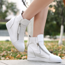2016秋冬新款平底坡跟高帮鞋时尚牛皮隐形内增高休闲女单鞋潮包邮