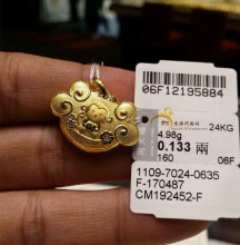 香港代购全国联保周大福专柜999.9黄金生肖猴锁宝宝金锁吊坠