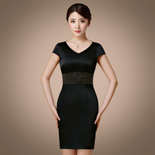 2017夏季新款女装韩版修身显瘦钉珠名媛礼服桑蚕丝绸缎真丝连衣裙