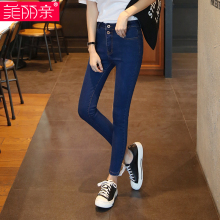 美丽亲春秋季薄款高腰牛仔裤女小脚裤九分裤黑色修身长裤大码女裤