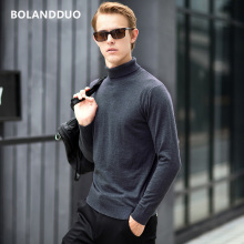 100%羊毛黑色高领毛衣男韩版修身冬季套头打底针织衫高领羊毛衫男