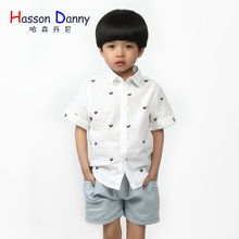 哈森丹尼2017夏季新款男童短袖时尚纯棉印杯子衬衫舒适新颖百搭