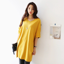 2017春夏大码女装中长款 纯色简约百搭上衣 显瘦中袖竹节棉T恤