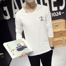 秋季男装长袖t恤v领青年韩版潮纯棉薄款修身帅气打底衫学生上衣服