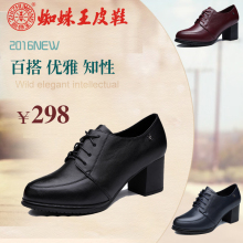 蜘蛛王女鞋皮鞋系带圆头高跟粗跟头层牛皮女式皮鞋窝窝鞋单鞋女