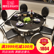 现代简约玻璃圆餐桌 时尚高档不锈钢圆形餐台 餐厅桌子加转盘饭桌