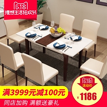 莫柏思 现代烤漆伸缩餐桌 玻璃面实木餐台餐桌椅组合小户型家用桌