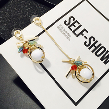 韩国不对称气质长款耳环女几何圆形吊坠个性百搭水晶耳钉耳坠耳饰