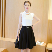 无袖V领打底雪纺衫A字蓬蓬裙修身OL时尚两件套装女夏季2017连衣裙