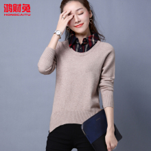 2017春秋新款女装衬衫领打底衫修身显瘦套头假两件针织衫女毛衣
