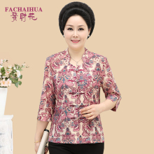 中老年女装夏装中袖衬衫印花立领妈妈秋装60-70岁老年人奶奶衬衣