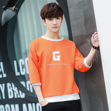 韩版夏装男士短袖t恤圆领七分袖宽松打底衫体恤学生衣服潮流上衣