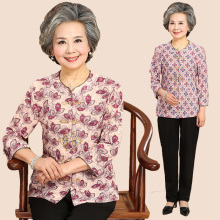 老年人夏装套装女60-70九分袖妈妈装上衣裤子奶奶装松紧腰长裤春