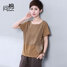 问棉宽松铜氨丝小衫女2017夏季新款大码休闲短袖t恤舒适百搭上衣