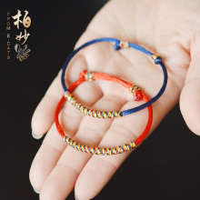 Ecats五彩绳五彩线五色缕手链14K包金珠子细款手绳脚绳 男女款