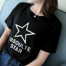 春夏季新款纯棉短袖T恤五角星圆领休闲百搭女士T恤上衣女全棉