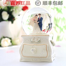 JARLL大号水晶球 新郎新娘 旋转音乐盒八音盒 创意戒指盒结婚礼物