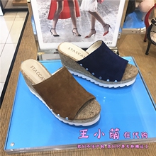 专柜正品代购思加图2017夏款羊皮女凉鞋坡跟拖鞋SZP9F303D 9F303