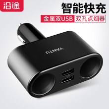 沿途车载充电器 汽车用多功能usb智能手机插头座一拖二车充点烟器