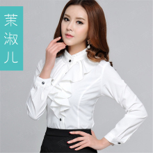 茉淑儿2017春秋新款 欧美荷叶边长袖衬衫女大码修身OL职业衬衣女