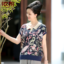 依佈2017新款夏装中老年女装妈妈装桑蚕丝短袖针织衫E7B0252
