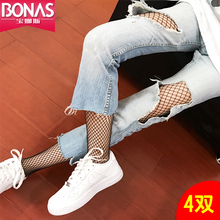 宝娜斯渔网袜连裤袜夏防勾丝原宿风性感网格丝袜花纹镂空美腿塑形