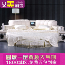 欧式音响大圆床真皮圆形主卧床白色公主床宾馆情侣双人床现代婚床